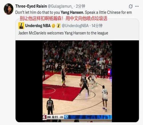 还有那个麦什么丹,直冲篮下,不留情面直接隔扣杨瀚森