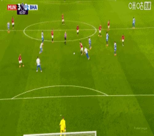 比赛第60分钟,谢什科助攻,姆伯莫低射近角破门,曼联三球领先。
