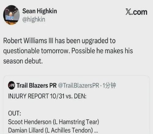 据开拓者方面的消息,罗伯特-威廉姆斯已经伤愈复出,近期回归。如果罗威回归了,对于杨瀚森来说是一个坏消息,杨瀚森的出场时间会更少!