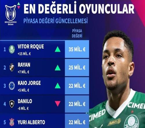 德转巴甲身价前10:巴萨旧将罗克3500万欧第1,内马尔未上榜